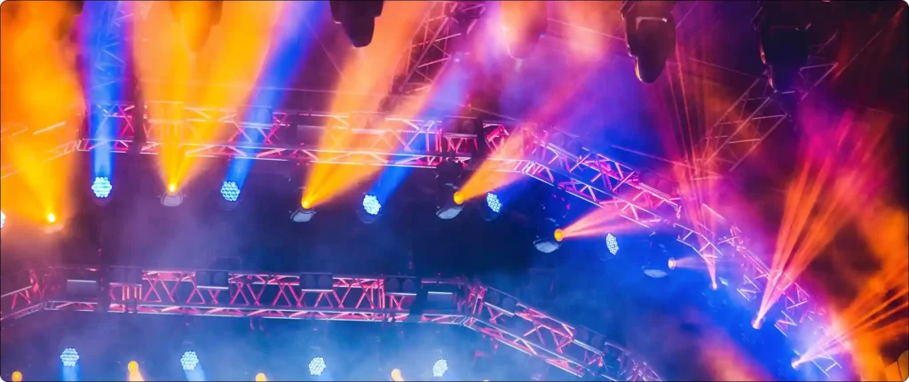 Pencahayaan panggung untuk menambah suasana, menyorot performer, dan memperkuat visual pertunjukan.