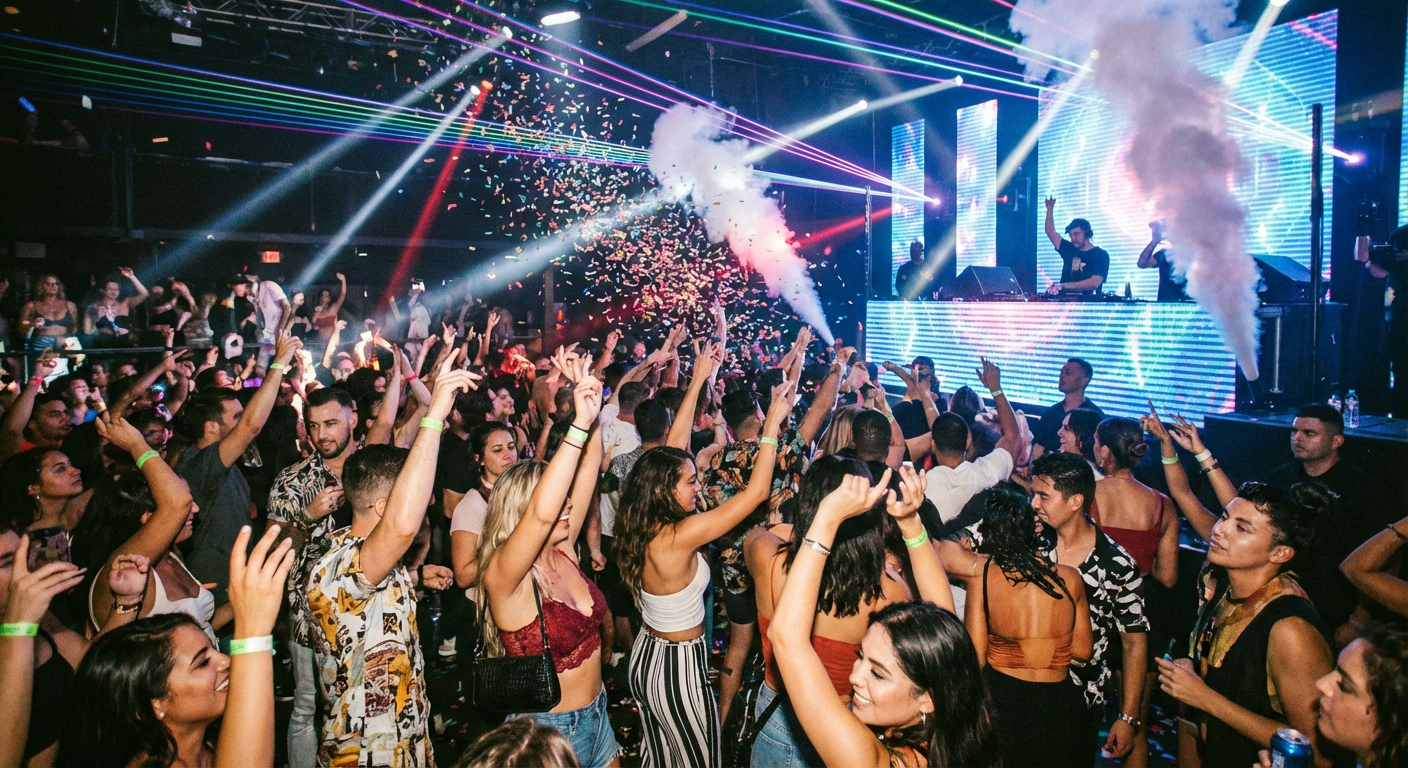 dari musik yang keras, lampu warna-warni, dan kerumunan yang bergerak mengikuti irama. Suasana seperti ini sangat